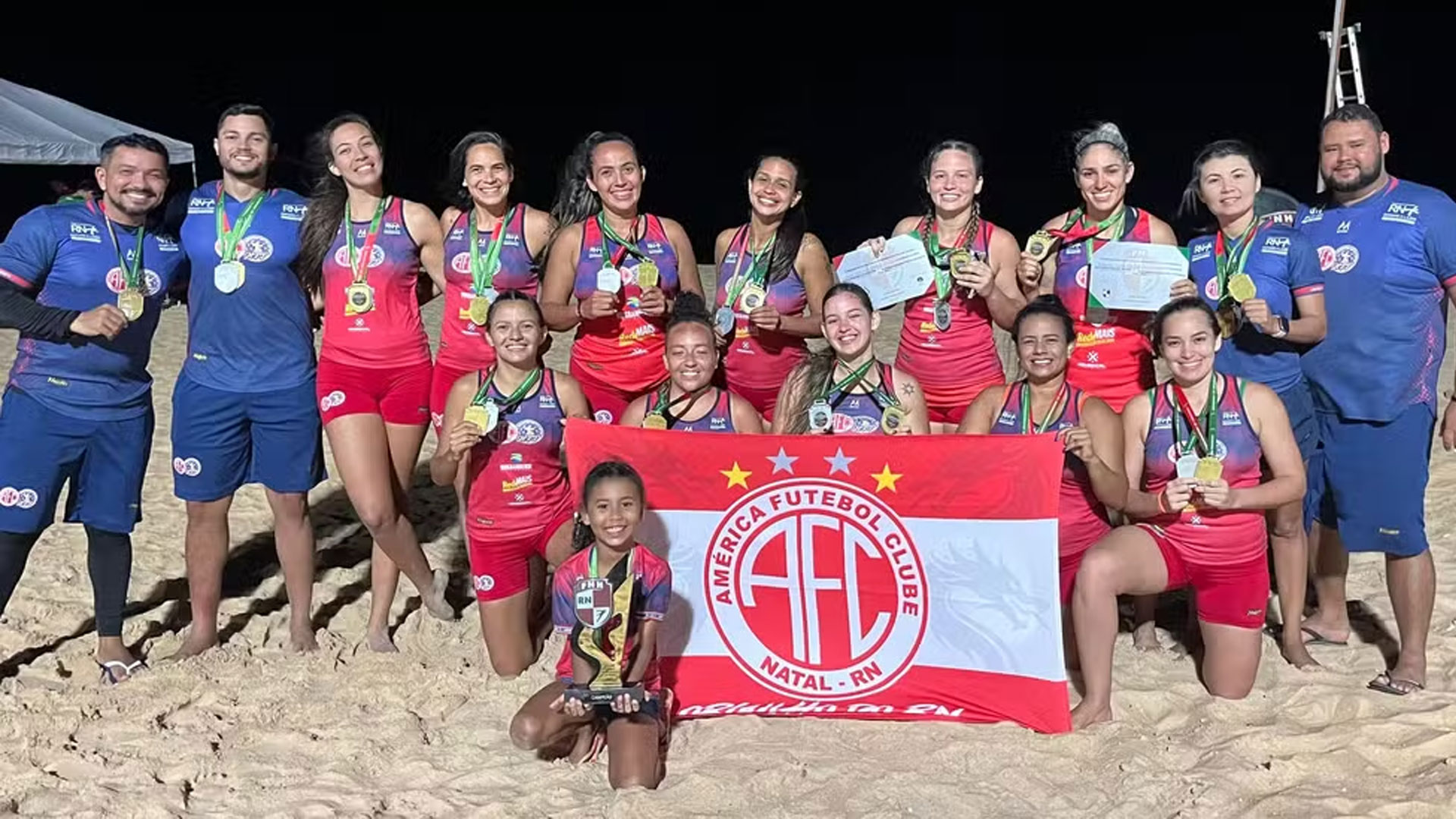 América-RN festeja quarto título estadual no handebol de praia