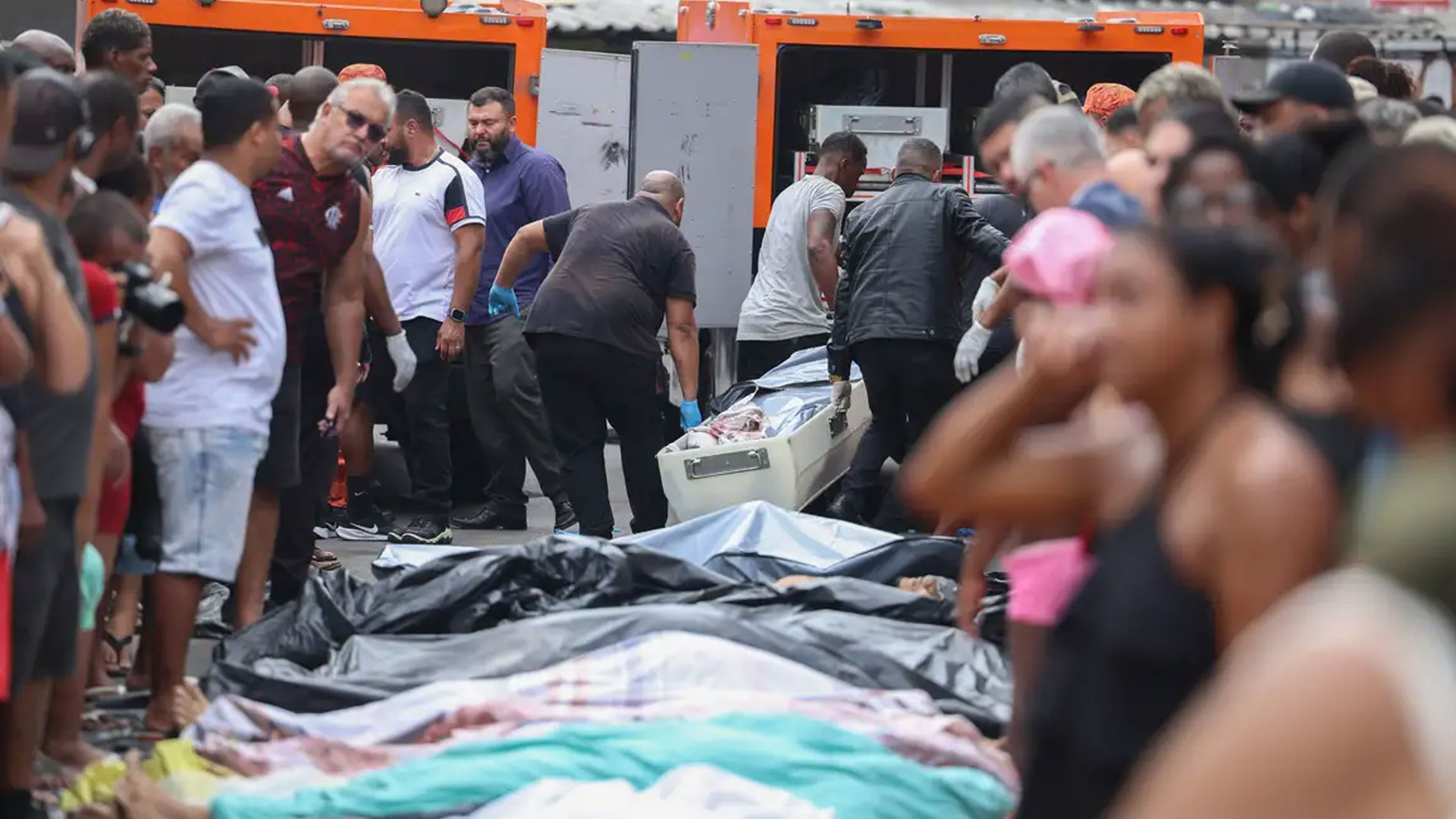 Cerca de 50 corpos foram retirados de uma área de mata do Complexo da Penha por moradores, após a operação realizada pelas forças de segurança do estado, nessa terça-feira (28). Os corpos foram reunidos na Praça São Lucas, no centro da comunidade, e de acordo com os moradores, não fazem parte da contagem oficial de 64 mortos – 60 suspeitos e 4 policiais. A Polícia Militar foi procurada, mas ainda não se pronunciou.