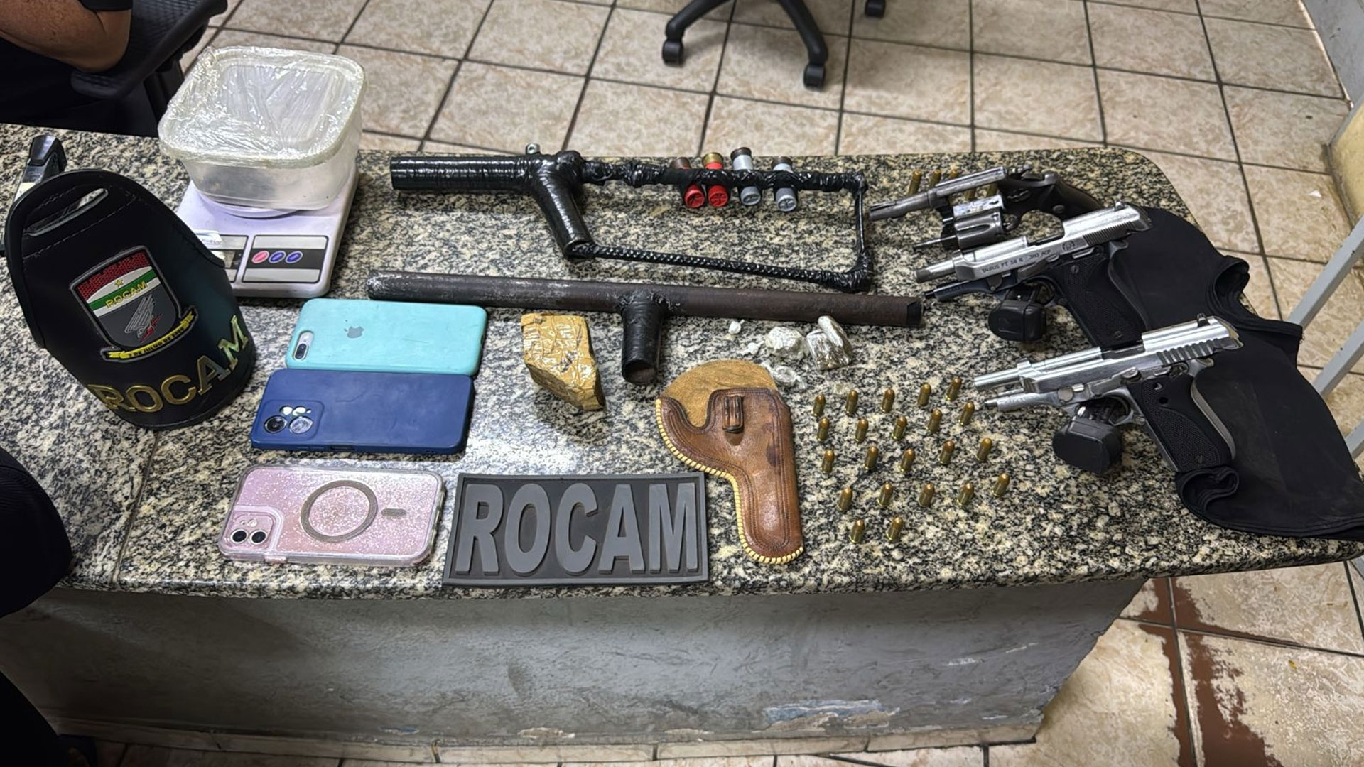 Uma ação da Ronda Ostensiva com Apoio de Motocicletas (Rocam) do 2º Batalhão de Polícia Militar resultou na captura de um foragido da Justiça e na apreensão de armas de fogo e drogas, nesta segunda-feira (3), em Mossoró, no Oeste potiguar.