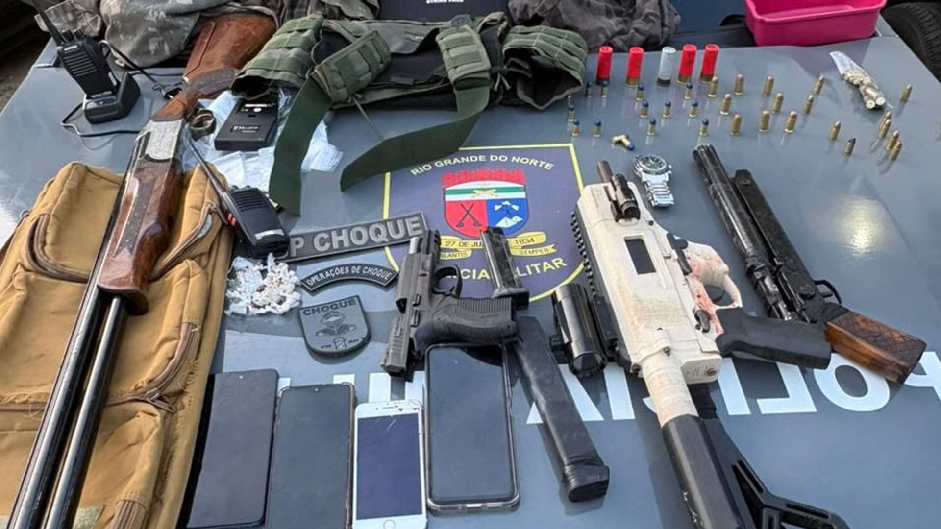 O material foi apresentado à autoridade policial para os procedimentos cabíveis. “A Polícia Militar do Rio Grande do Norte reafirma seu compromisso com a preservação da ordem pública e a segurança da sociedade potiguar, atuando com firmeza, dentro dos limites da legalidade, e em defesa da vida”, destacou.
